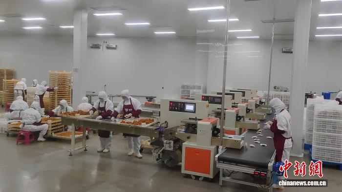 图为仄乐县桥亭城柿子添工企业工人正正在消费包拆柿饼。杨宗衰 摄