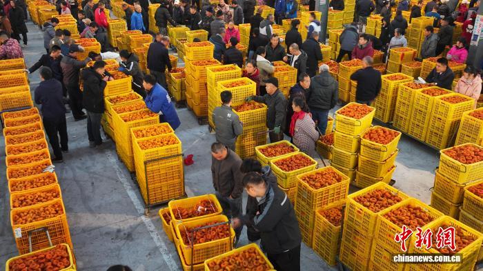 图为仄乐县沙子镇柿饼业务散市现场。(无人机像片)杨宗衰 摄