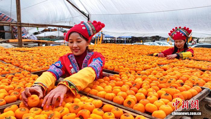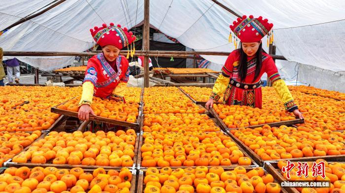 图为公众正在翻晒来皮柿子。杨宗衰 摄